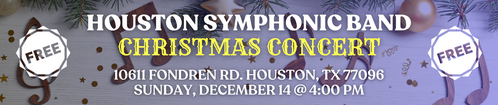 Expect a rich blend of traditional Christmas favorites, symphonic arrangements, and joyful seasonal tunes performed by the talented Houston Symphonic Band.